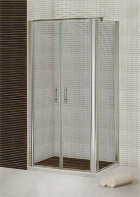 Apertura de 180º en hojas abatibles. Sujección de la hoja fija con tirante virio-pared. Tirador de barra cromada. Cristal de 6 mm securizado acabado en transparente, carglass, mate y serigrafías. Cierre magnético entre hojas. Altura 190 cm. Fabricación a medida. |